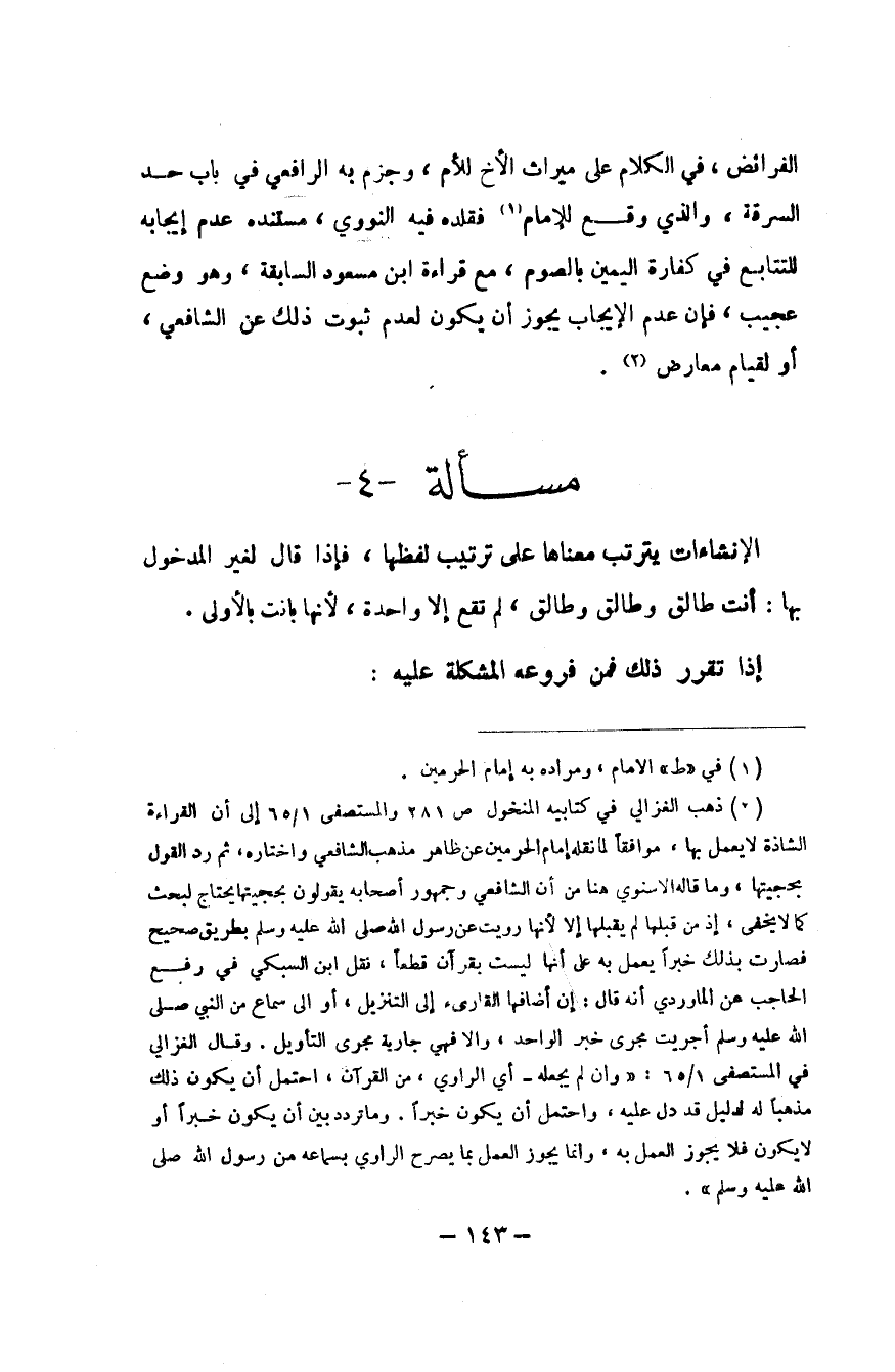 الْفَرَائِض فِي الْكَلَام على مِيرَاث الْأَخ للْأُم وَجزم بِهِ الرَّافِعِيّ فِي بَاب حد السّرقَة وَالَّذِي وَقع للْإِمَام فقلده فِيهِ النَّوَوِيّ مُسْتَنده عدم إِيجَابه للتتابع فِي كَفَّارَة الْيَمين بِالصَّوْمِ مَعَ قِرَاءَة ابْن مَسْعُود السَّابِقَة وَهُوَ وضع عَجِيب فَإِن عدم الْإِيجَاب يجوز أَن يكون لعدم ثُبُوت ذَلِك عَن الشَّافِعِي أَو لقِيَام معَارض