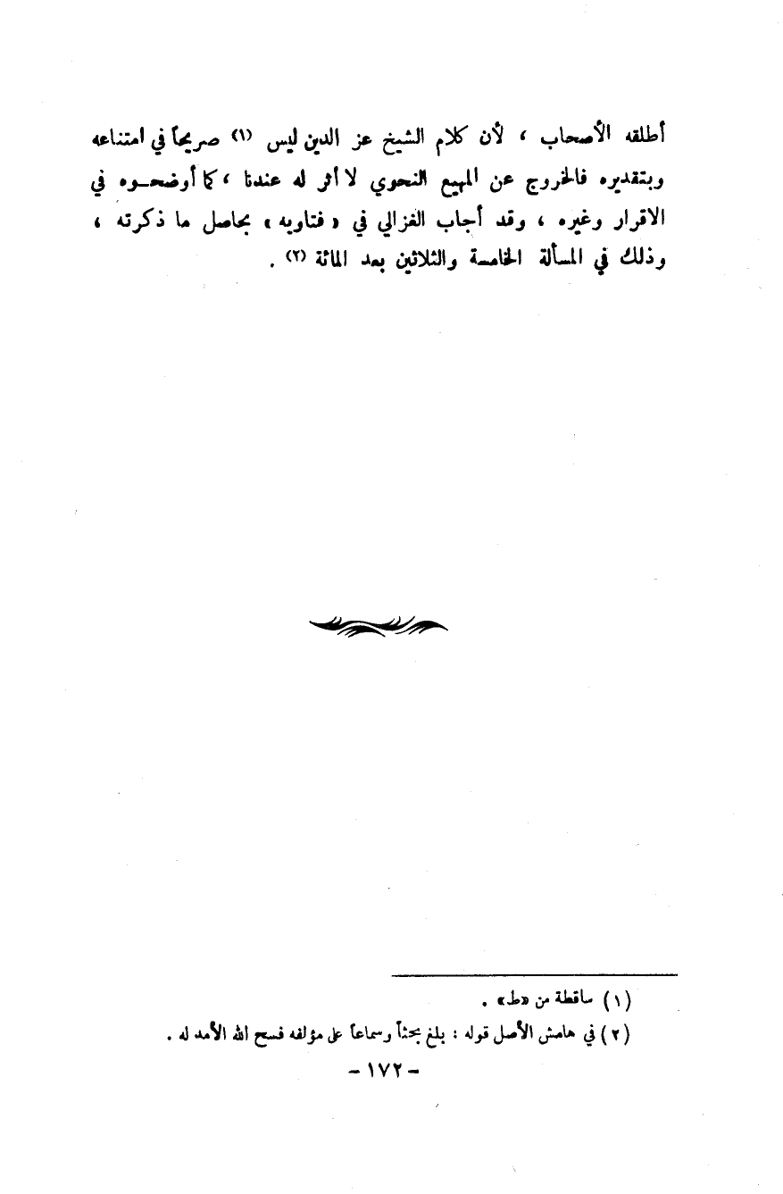 أطلقهُ الْأَصْحَاب لِأَن كَلَام الشَّيْخ عز الدّين لَيْسَ صَرِيحًا فِي امْتِنَاعه وبتقديره فالخروج عَن المهيع النَّحْوِيّ لَا أثر لَهُ عندنَا كَمَا أوضحوه فِي الاقرار وَغَيره وَقد أجَاب الْغَزالِيّ فِي فَتَاوِيهِ بحاصل مَا ذكرته وَذَلِكَ فِي الْمَسْأَلَة الْخَامِسَة وَالثَّلَاثِينَ بعد المائه