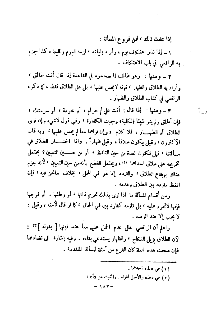 إِذا علمت ذَلِك فَمن فروع الْمَسْأَلَة