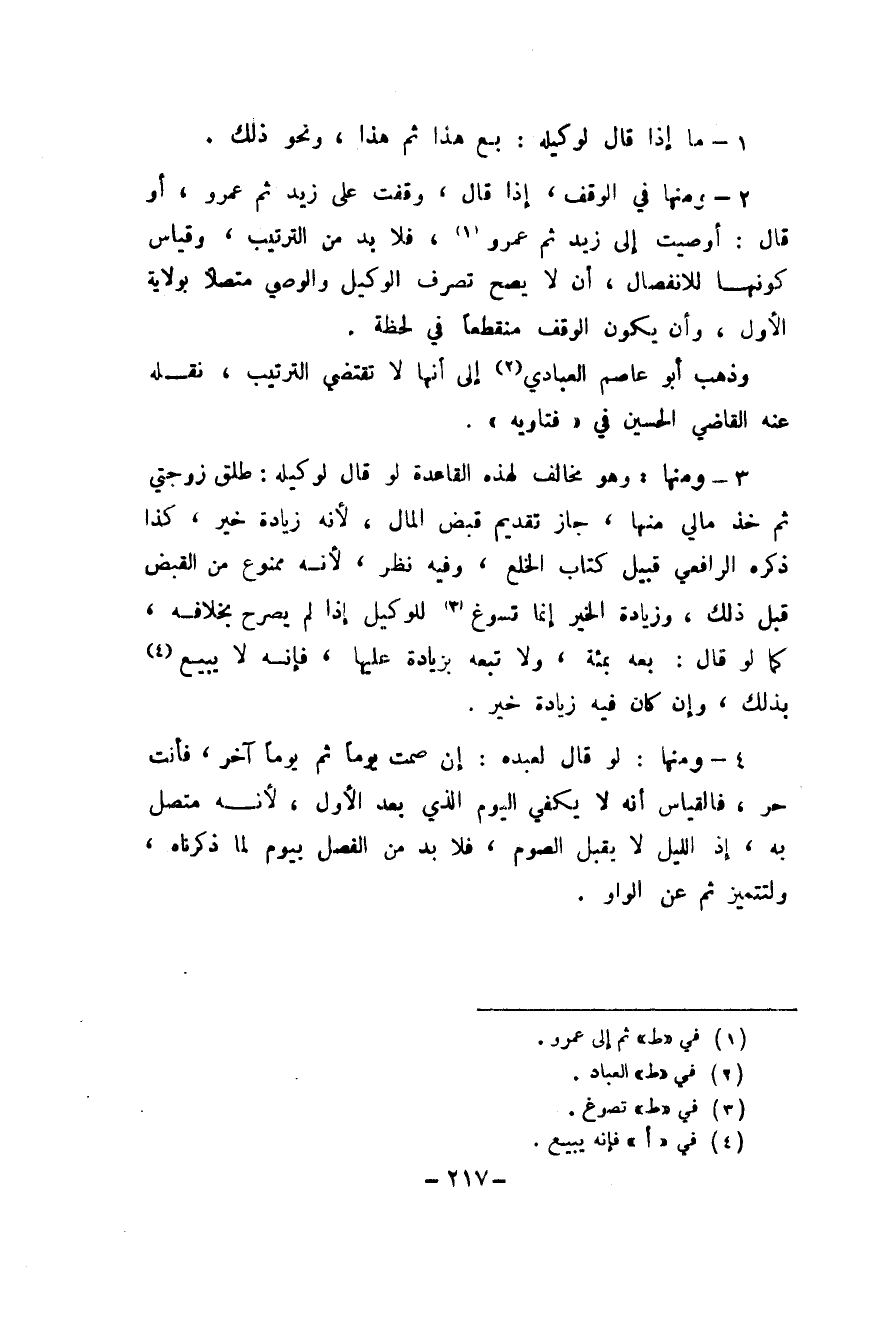 ٣ - وَمِنْهَا وَهُوَ مُخَالف لهَذِهِ الْقَاعِدَة لَو قَالَ لوَكِيله طلق زَوْجَتي ثمَّ خُذ مَالِي مِنْهَا جَازَ تَقْدِيم قبض المَال لِأَنَّهُ زِيَادَة خير كَذَا ذكره الرَّافِعِيّ قبيل كتاب الْخلْع وَفِيه نظر لِأَنَّهُ مَمْنُوع من الْقَبْض قبل ذَلِك وَزِيَادَة الْخَيْر إِنَّمَا تسوغ للْوَكِيل إِذا لم يُصَرح بِخِلَافِهِ كَمَا لَو قَالَ بِعْهُ بمئة وَلَا تبعه بِزِيَادَة عَلَيْهَا فَإِنَّهُ لَا يَبِيع بذلك وَإِن كَانَ فِيهِ زِيَادَة خير