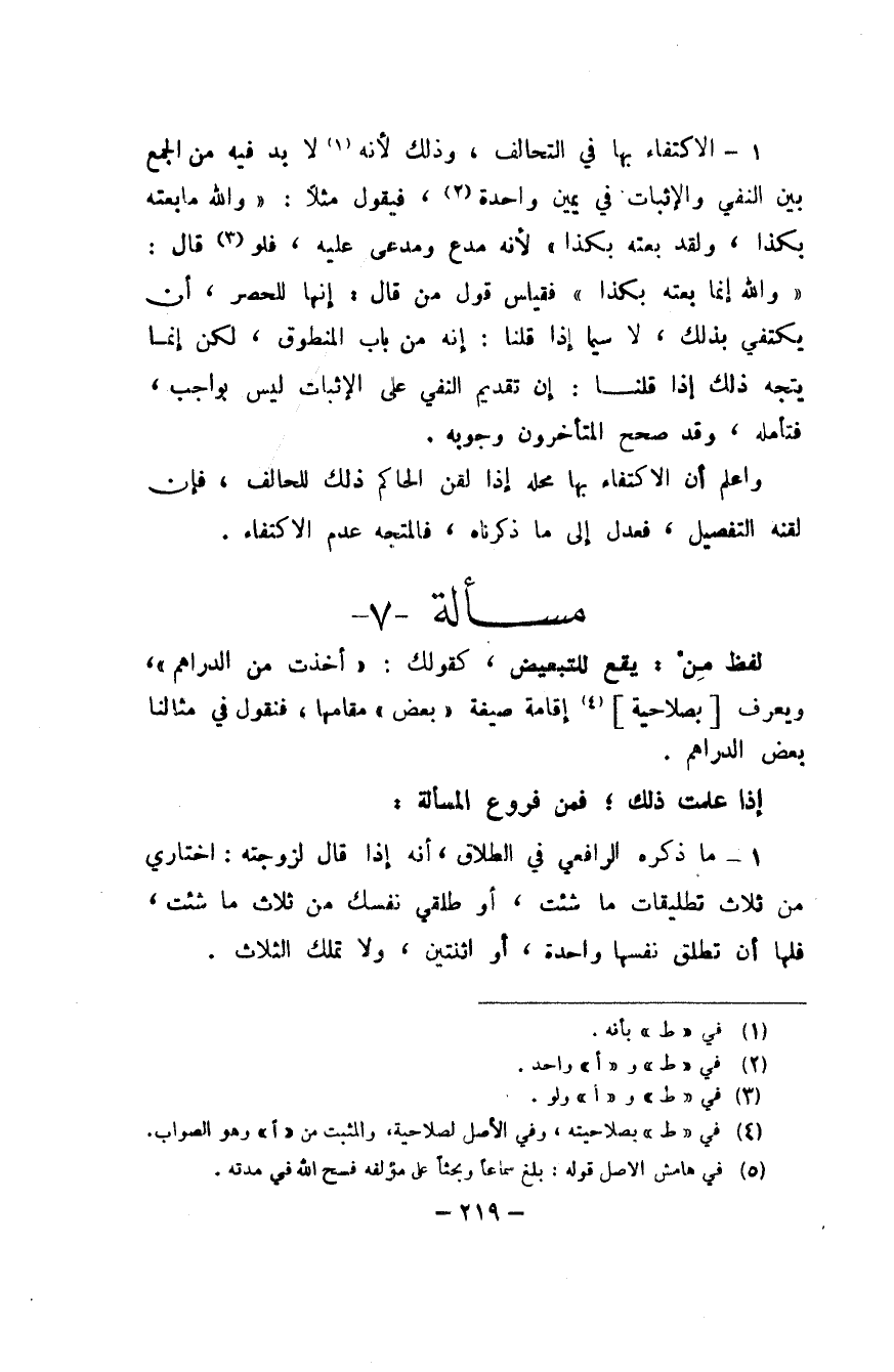 ١ - الِاكْتِفَاء بهَا فِي التَّحَالُف وَذَلِكَ لِأَنَّهُ لَا بُد فِيهِ من الْجمع بَين النَّفْي وَالْإِثْبَات فِي يَمِين وَاحِدَة فَيَقُول مثلا وَالله مَا بِعته بِكَذَا وَلَقَد بِعته بِكَذَا لِأَنَّهُ مُدع ومدعى عَلَيْهِ فَلَو قَالَ وَالله إِنَّمَا بِعته بِكَذَا فَقِيَاس قَول من قَالَ إِنَّهَا للحصر أَن يَكْتَفِي بذلك لَا سِيمَا إِذا قُلْنَا إِنَّه من بَاب الْمَنْطُوق لَكِن إِنَّمَا يتَّجه ذَلِك إِذا قُلْنَا إِن تَقْدِيم النَّفْي على الْإِثْبَات لَيْسَ بِوَاجِب فَتَأَمّله وَقد صحّح الْمُتَأَخّرُونَ وُجُوبه