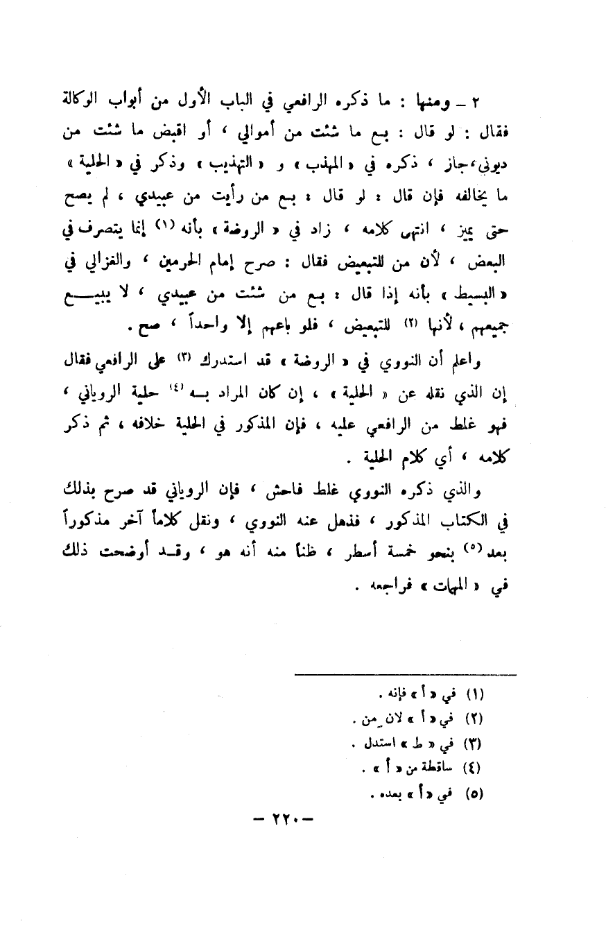 ٢ - وَمِنْهَا مَا ذكره الرَّافِعِيّ فِي الْبَاب الأول من أَبْوَاب الْوكَالَة فَقَالَ لَو قَالَ بِعْ مَا شِئْت من أَمْوَالِي أَو اقبض مَا شِئْت من ديوني جَازَ ذكره فِي الْمُهَذّب والتهذيب وَذكر فِي الْحِلْية مَا يُخَالِفهُ فَإِن قَالَ لَو قَالَ بِعْ من رَأَيْت من عَبِيدِي لم يَصح حَتَّى يُمَيّز انْتهى كَلَامه زَاد فِي الرَّوْضَة بِأَنَّهُ إِنَّمَا يتَصَرَّف فِي الْبَعْض لِأَن من للتَّبْعِيض فَقَالَ صرح إِمَام الْحَرَمَيْنِ وَالْغَزالِيّ فِي الْبَسِيط بِأَنَّهُ إِذا قَالَ بِعْ من شِئْت من عَبِيدِي لَا يَبِيع جَمِيعهم لِأَنَّهَا للتَّبْعِيض فَلَو باعهم إِلَّا وَاحِدًا صَحَّ