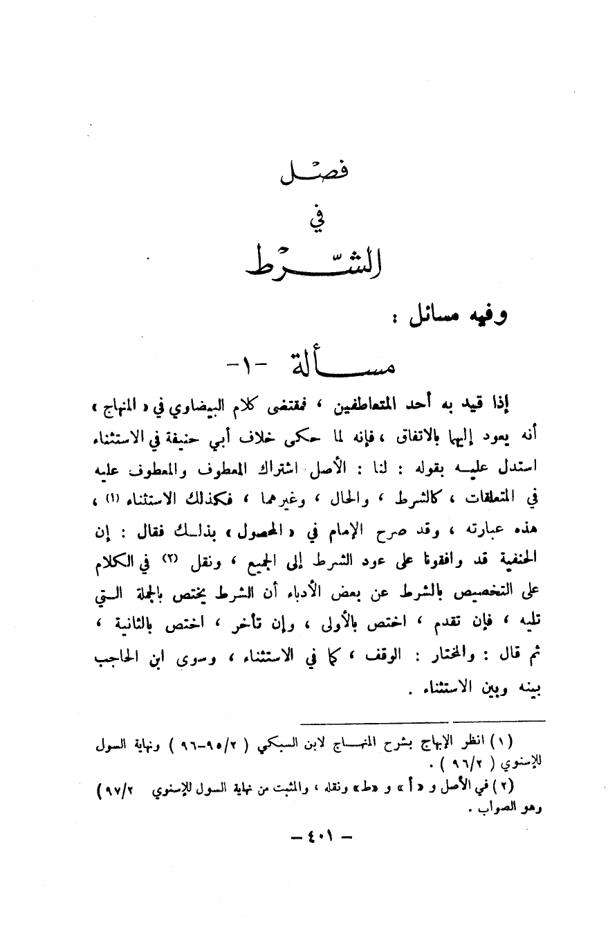 فصل فِي الشَّرْط وَفِيه مسَائِل