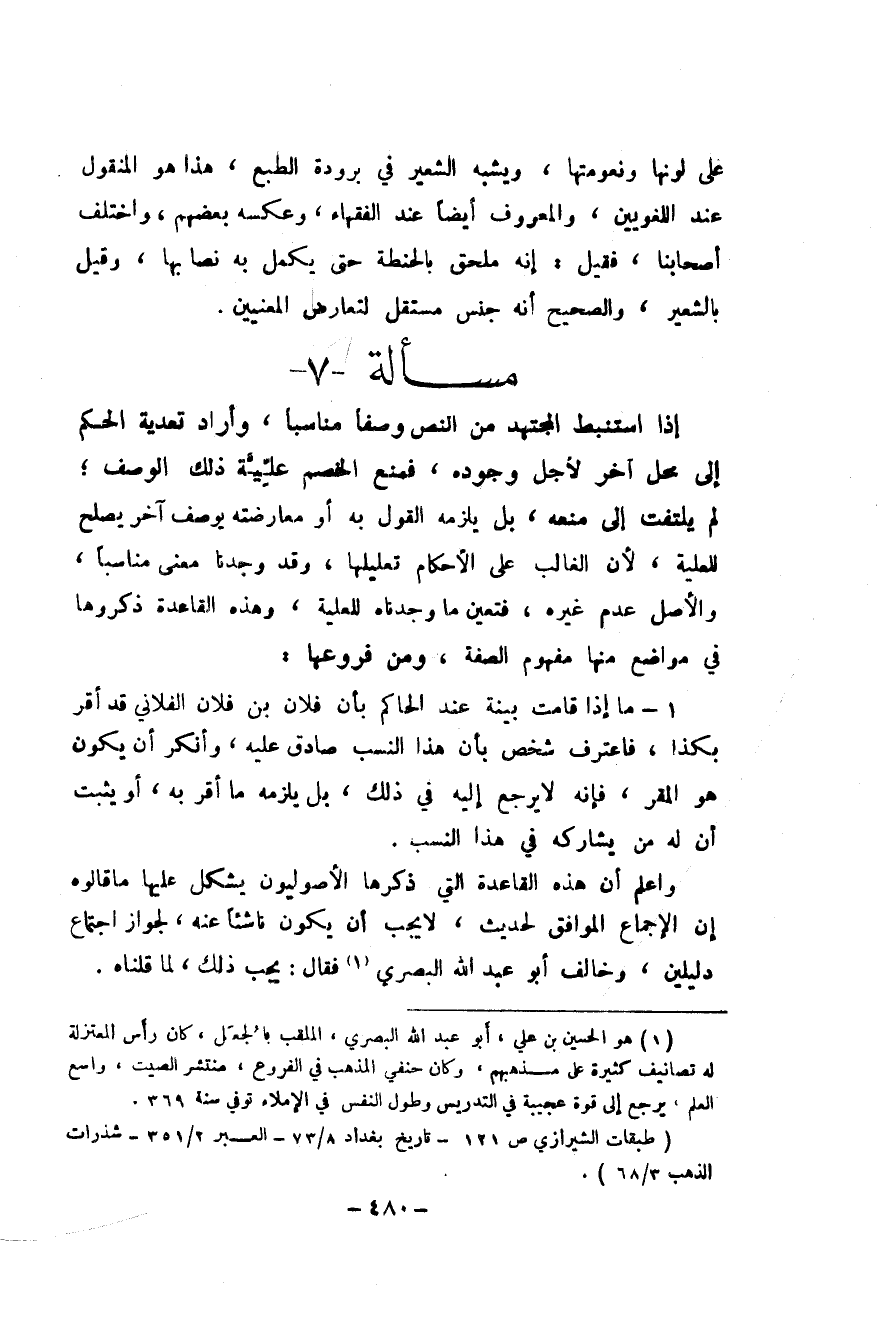 إِذا استنبط الْمُجْتَهد من النَّص وَصفا مناسبا واراد تَعديَة الحكم إِلَى مَحل آخر لأجل وجوده فَمنع الْخصم علية ذَلِك الْوَصْف لم يلْتَفت إِلَى مَنعه بل يلْزمه القَوْل بِهِ أَو معارضته يُوصف آخر يصلح للعلية لِأَن الْغَالِب على الْأَحْكَام تعليلها وَقد وجدنَا معنى مناسبا وَالْأَصْل عدم غَيره فَتعين مَا وَجَدْنَاهُ للعلية وَهَذِه الْقَاعِدَة ذكروها فِي مَوَاضِع مِنْهَا مَفْهُوم الصّفة وَمن فروعها