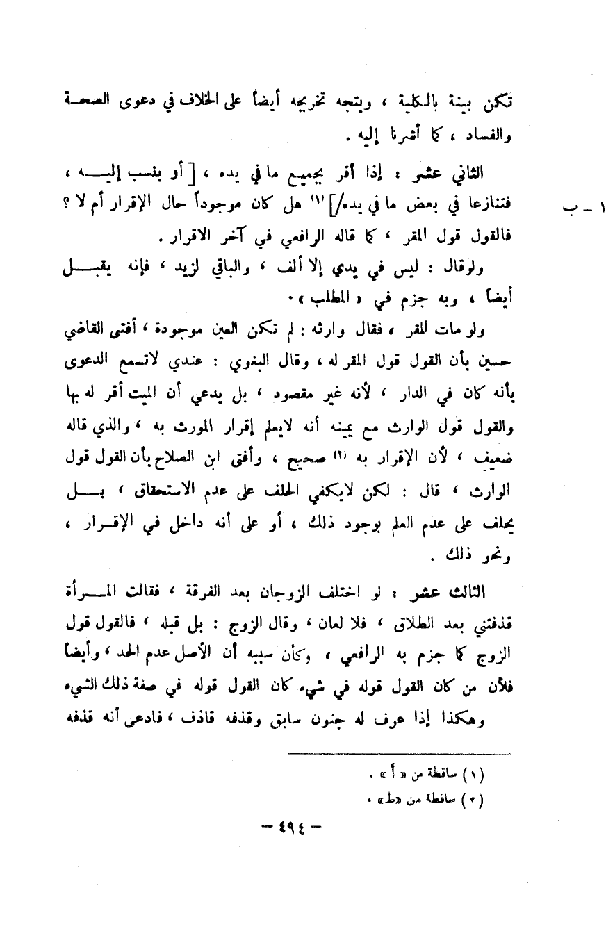 الثَّانِي عشر إِذا أقرّ بِجَمِيعِ مَا فِي يَده أَو بِنسَب إِلَيْهِ فتنازعا فِي بعض مَا فِي يَده هَل كَانَ مَوْجُودا حَال الْإِقْرَار أم لَا فَالْقَوْل قَول الْمقر كَمَا قَالَه الرَّافِعِيّ فِي آخر الأقرار