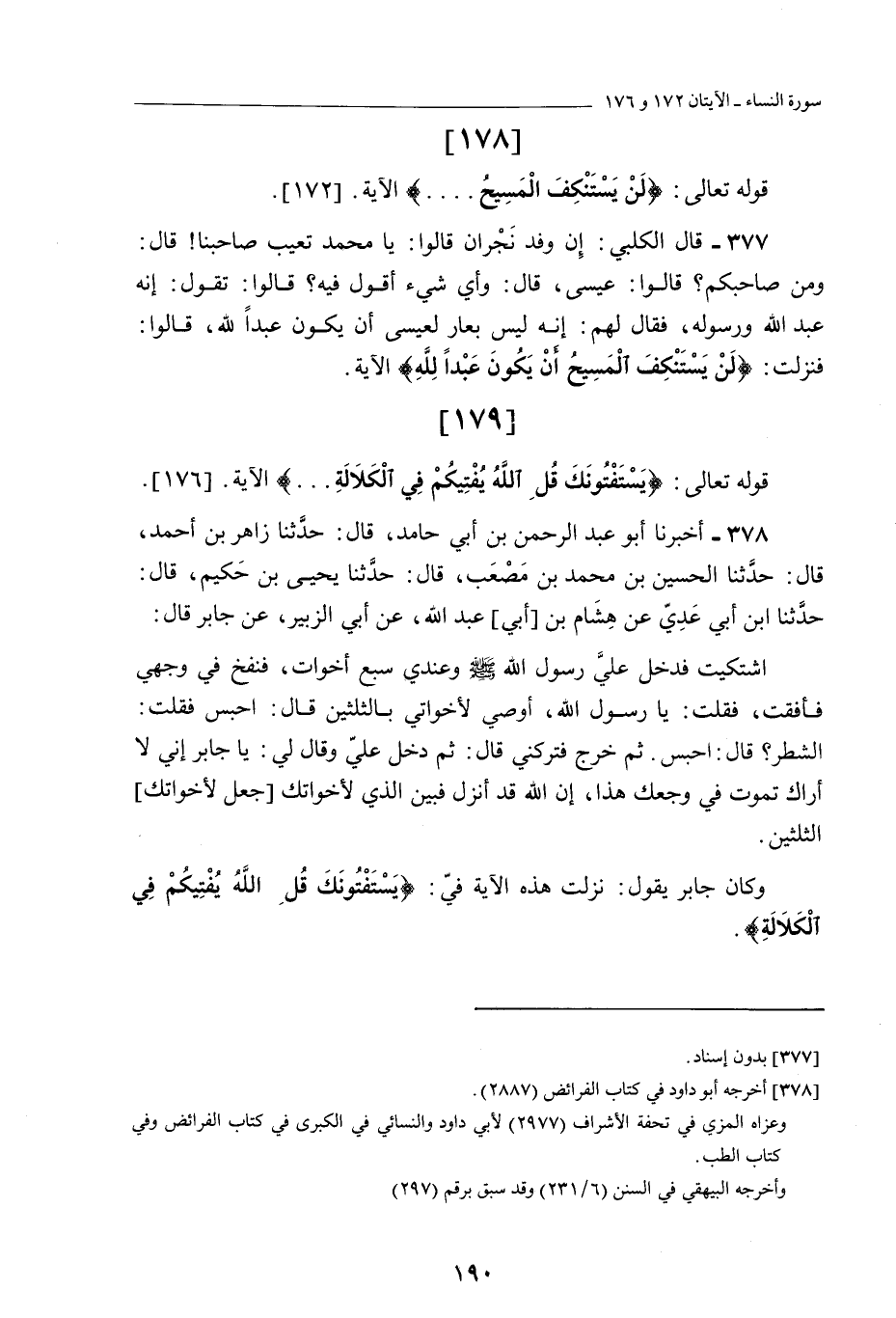 وَكَانَ جَابِرٌ يَقُولُ: نَزَلَتْ هَذِهِ الْآيَةُ فِيَّ: يَسْتَفْتُونَكَ قُلِ اللَّهُ يُفْتِيكُمْ فِي الْكَلَالَةِ.)
