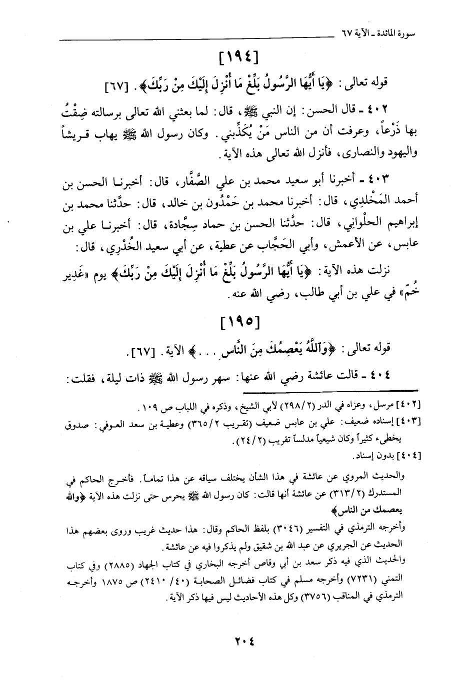 [194] قوله تعالى: يا أَيُّهَا الرَّسُولُ بَلِّغْ مَا أُنْزِلَ إِلَيْكَ مِنْ رَبِّكَ. [67]