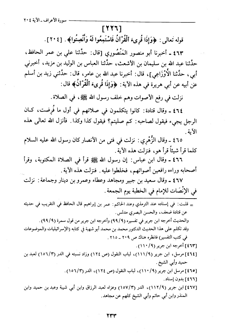 «467» - وَقَالَ سَعِيدُ بْنُ جُبَيْرٍ وَمُجَاهِدٌ وَعَطَاءٌ وَعَمْرُو بْنُ دِينَارٍ وَجَمَاعَةٌ: نَزَلَتْ فِي الْإِنْصَاتِ لِلْإِمَامِ فِي الْخُطْبَةِ يَوْمَ الْجُمُعَةِ.