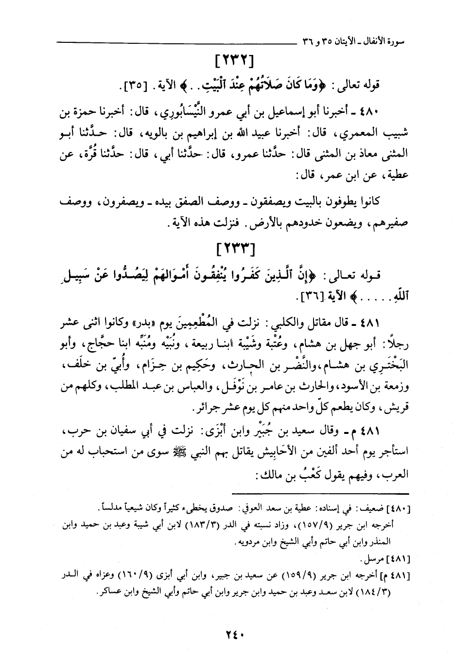 [233] قَوْلُهُ تَعَالَى: إِنَّ الَّذِينَ كَفَرُوا يُنْفِقُونَ أَمْوَالَهُمْ لِيَصُدُّوا عَنْ سَبِيلِ اللَّهِ.... الْآيَةَ [36] .