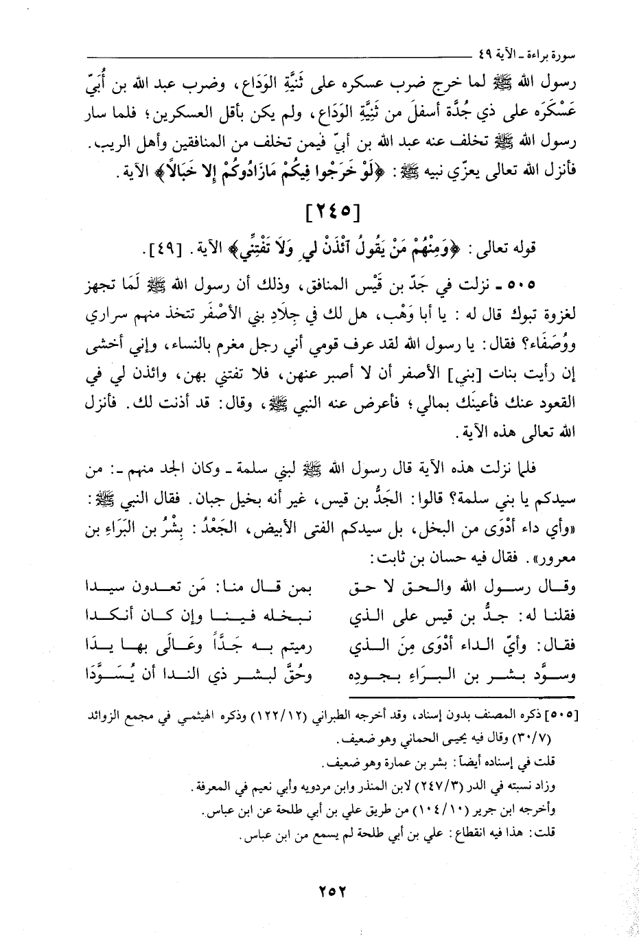 [245] قَوْلُهُ تَعَالَى: وَمِنْهُمْ مَنْ يَقُولُ ائْذَنْ لِي وَلَا تَفْتِنِّي الْآيَةَ. [49] .