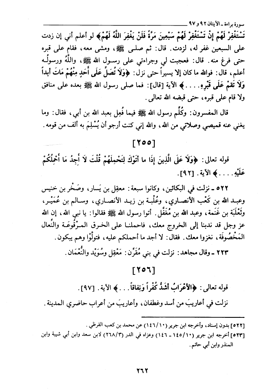 [256] قَوْلُهُ تَعَالَى: الْأَعْرَابُ أَشَدُّ كُفْراً وَنِفاقاً ... الآية. [97] .