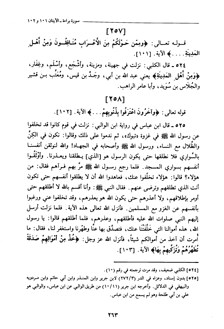 [258] قَوْلُهُ تَعَالَى: وَآخَرُونَ اعْتَرَفُوا بِذُنُوبِهِمْ ... الآية. [102] .