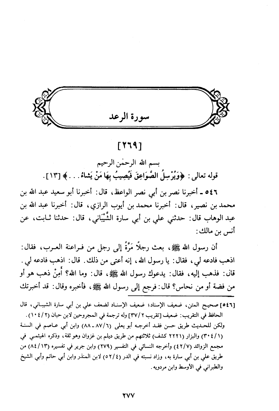 [269] بِسْمِ اللَّهِ الرَّحْمَنِ الرَّحِيمِ قَوْلُهُ تَعَالَى: وَيُرْسِلُ الصَّوَاعِقَ فَيُصِيبُ بِهَا مَنْ يَشَاءُ ... [13] .