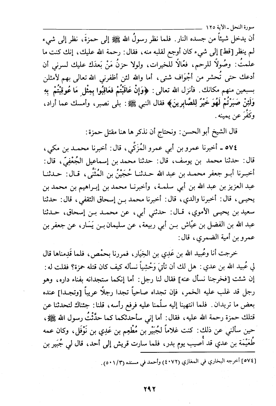 قَالَ الشَّيْخُ أَبُو الْحَسَنِ: ونحتاج أن نذكرها هنا مَقْتَلَ حَمْزَةَ: