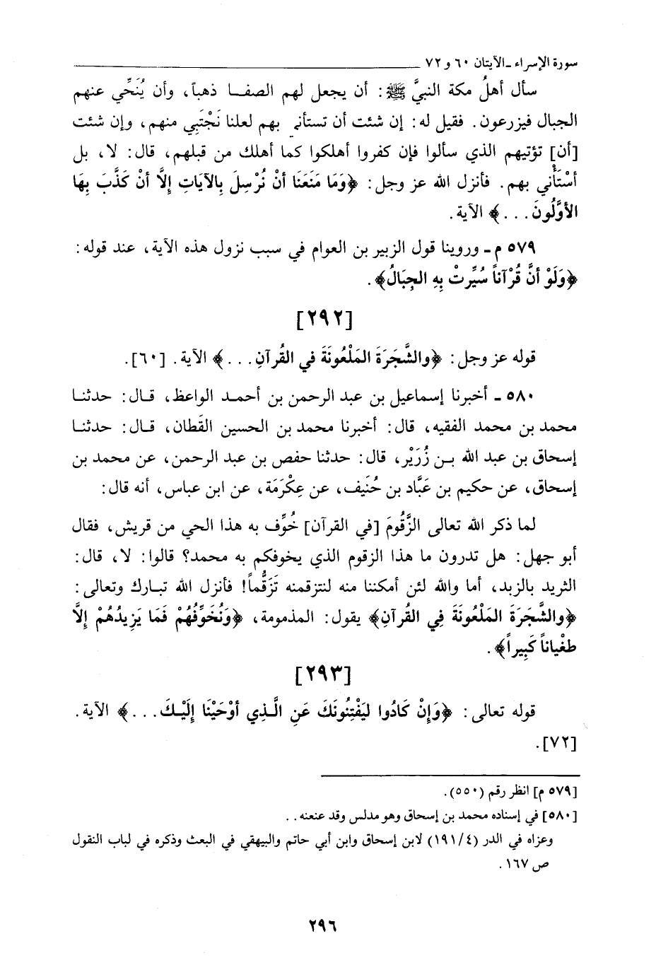 «579» م- وَرَوَيْنَا قَوْلَ الزُّبَيْرِ بْنِ الْعَوَّامِ فِي سَبَبِ نُزُولِ هَذِهِ الْآيَةِ، عِنْدَ قَوْلِهِ: