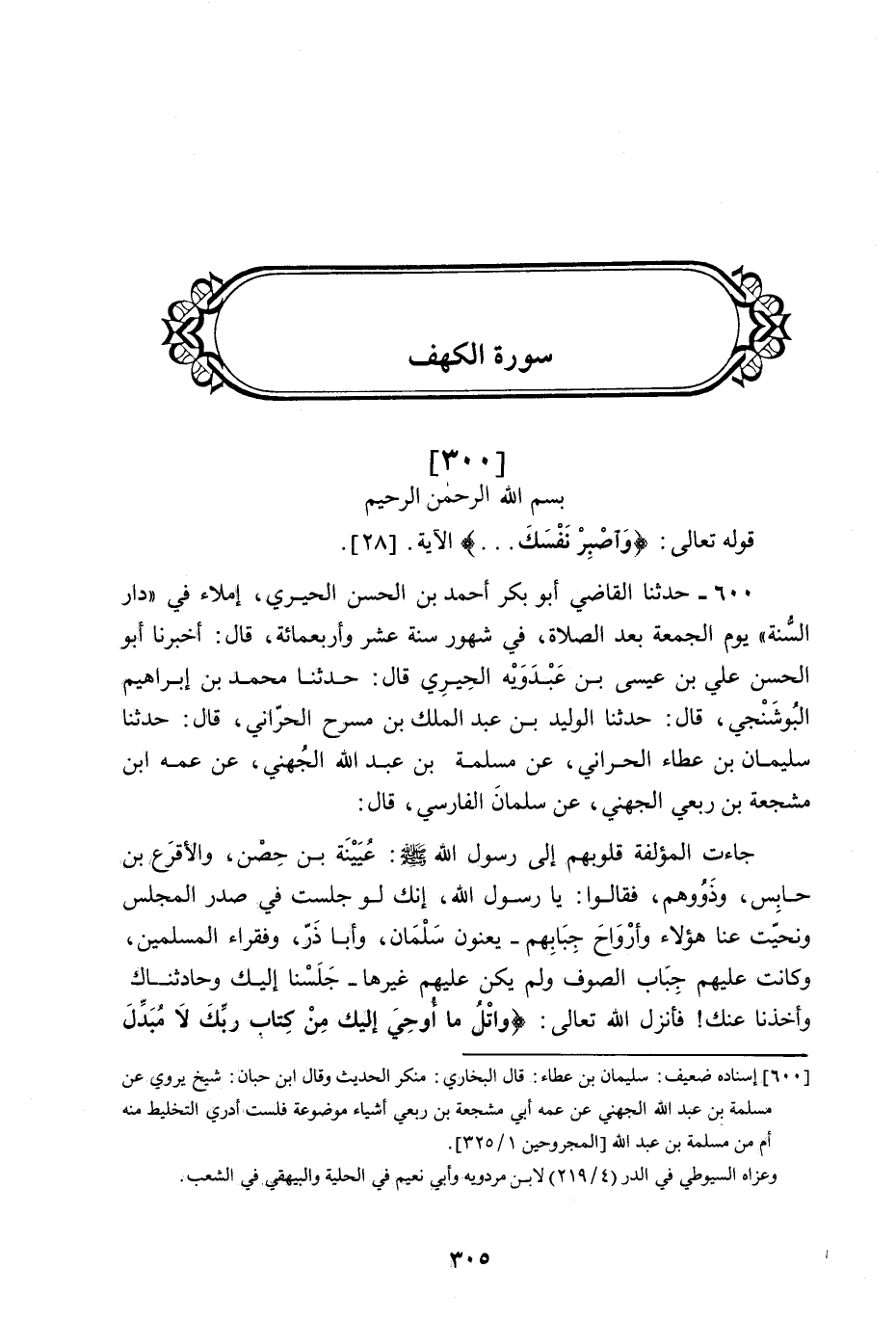[300] بِسْمِ اللَّهِ الرَّحْمَنِ الرَّحِيمِ قَوْلُهُ تَعَالَى: وَاصْبِرْ نَفْسَكَ ... الْآيَةَ. [28] .