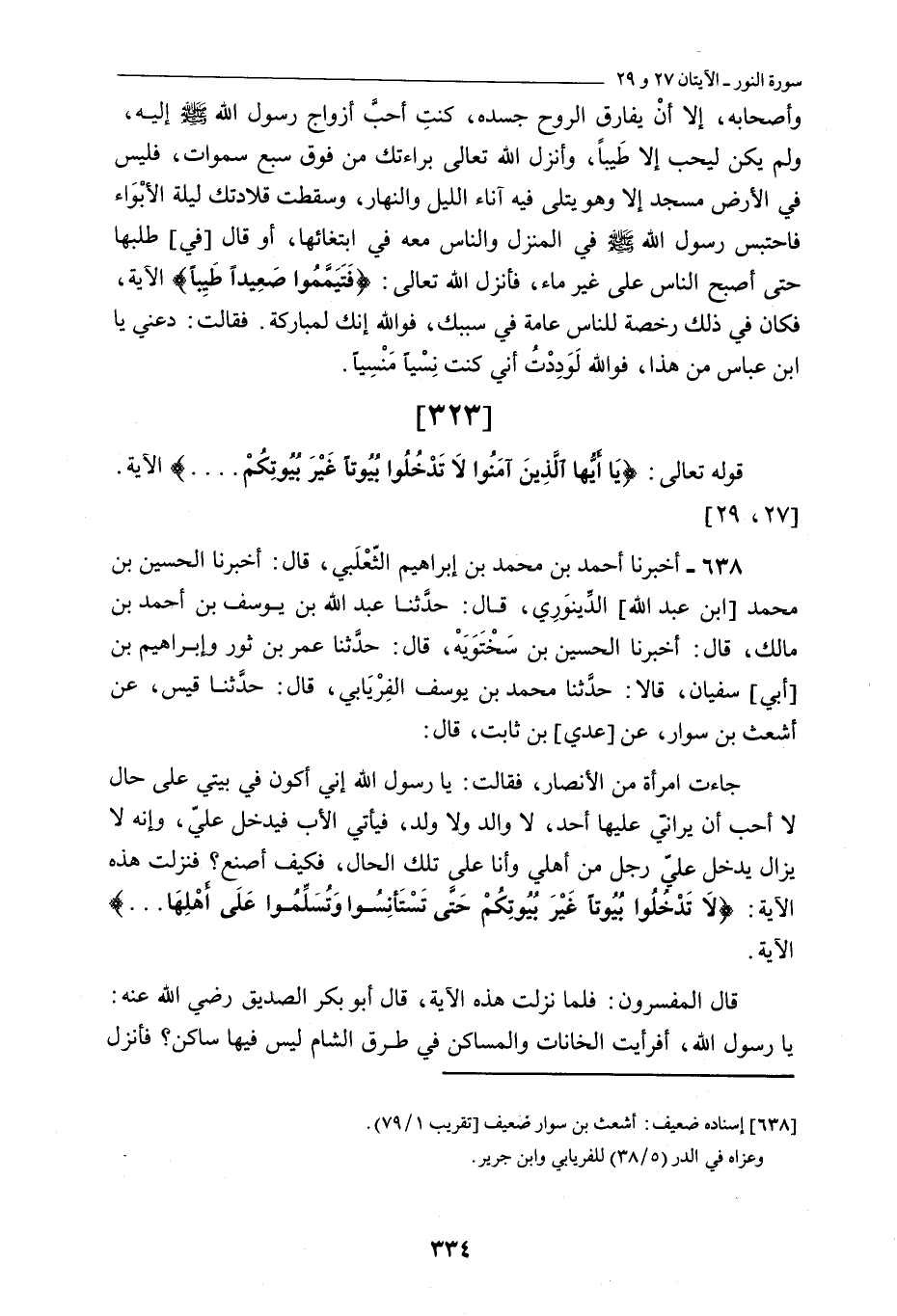 [323] قوله تعالى: يا أَيُّهَا الَّذِينَ آمَنُوا لَا تَدْخُلُوا بُيُوتًا غَيْرَ بُيُوتِكُمْ ... الْآيَةَ.