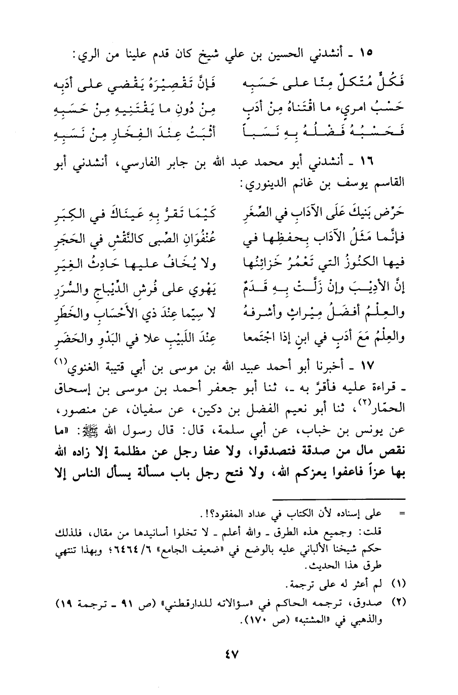 16 - أَنْشَدَنِي أَبُو مُحَمَّدٍ عَبْدُ اللَّهِ بْنُ جَابِرٍ الْفَارِسِيُّ أَنْشَدَنِي أَبُو الْقَاسِمِ يُوسُفُ بْنُ غَانِمٍ الدينَوَرِي