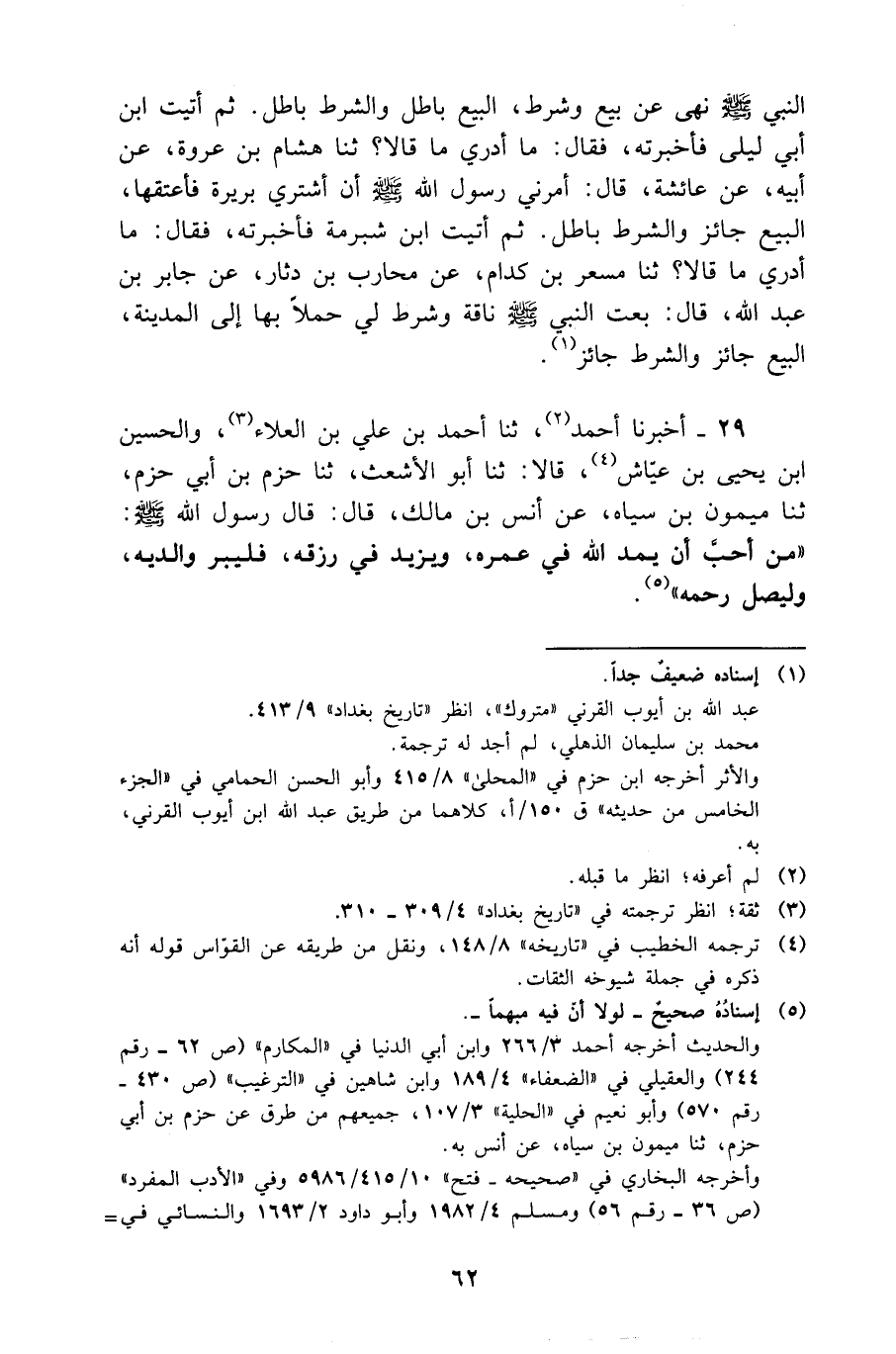 النَّبِيَّ صَلَّى اللَّهُ عَلَيْهِ وَسَلَّمَ نَهَى عَنْ بَيْعٍ وَشَرْطٍ الْبَيْعُ بَاطِلٌ وَالشَّرْطُ بَاطِلٌ ثُمَّ أَتَيْتُ ابْنَ أَبِي لَيْلَى فَأَخْبَرْتُهُ فَقَالَ مَا أَدْرِي مَا قَالَا ثَنَا هِشَامُ بْنُ عُرْوَةَ عَنْ أَبِيهِ عَنْ عَائِشَةَ قَالَ أَمَرَنِي رَسُولُ الله ص