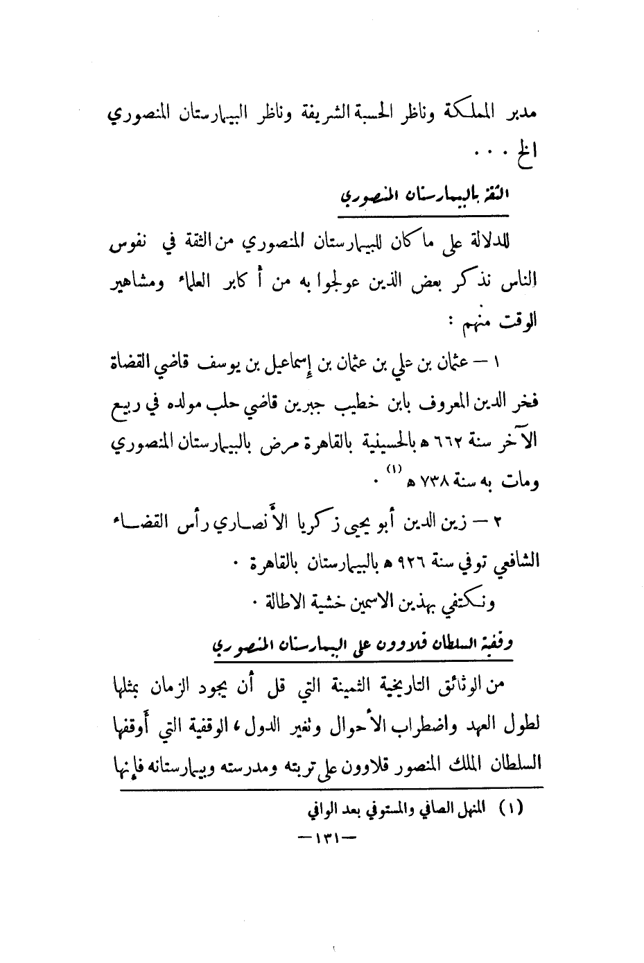 مدير المملكة وناظر الحسبة الشريفة وناظر البيمارستان المنصوري الخ. . .