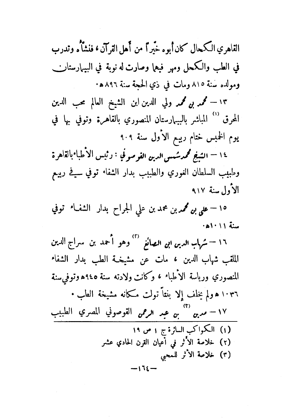 14 - الشيخ محمد شمس الدين القوصوني: رئيس الأطباء بالقاهرة وطبيب السلطان الغوري والطبيب بدار الشفاء توفي في ربيع الأول سنة 917.