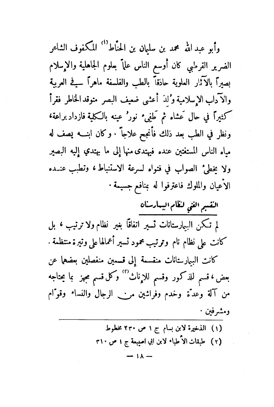 لم تكن البيمارستانات لسير اتفاقا بغير نظام ولا ترتيب، بل كانت على نظام تام وترتيب محمود تسير أعمالهما على وتيرة منتظمة.