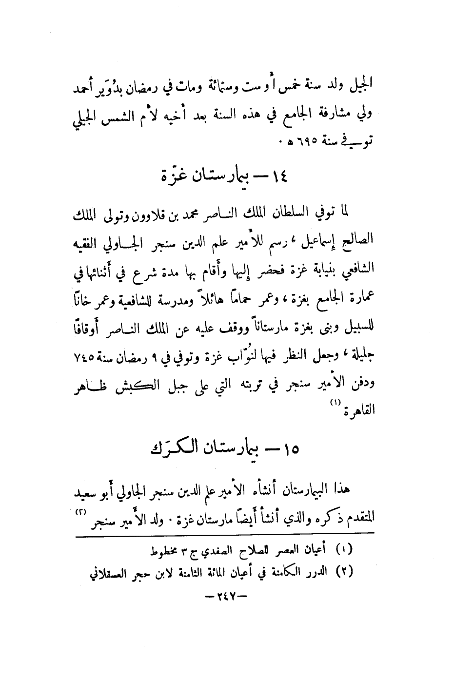هذا البيمارستان أنشأه الأمير علم الدين سنجر الجاولي أبو سعيد المتقدم ذكره والذي أنشأ أيضا مارستان غزة. ولد الأمير سنجر