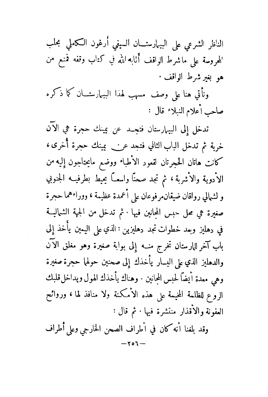 ونأتي هنا على وصف مسهب لهذا البيمارستان كما ذكره صاحب أعلام النبلاء قال: