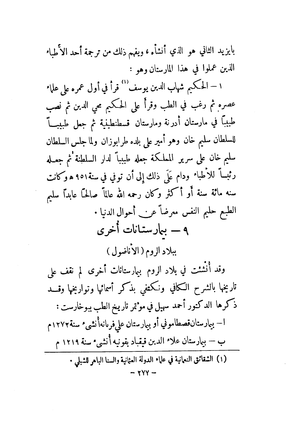 1 - الحكيم شهاب الدين يوسف قرأ في أول عمره على علماء عصره ثم رغب في الطب وقرأ على الحكيم محي الدين ثم نصب طبيبا في مارستان أدرنة ومارستان قسطنطينية ثم جعل طبيبا للسلطان سليم خان وهو أمير على بلده طرابوزان ولما جلس السلطان سليم خان على سرير المملكة جعله طبيبا لدار السلطنة ثم جعله رئيسا للأطباء ودام ذلك إلى أن توفي في سنة 951هـ وكانت سنه