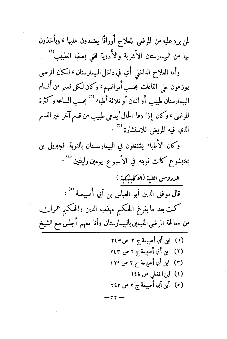 كنت بعد ما يفرغ الحكيم مهذب الدين والحكيم عمران من معالجة المرضى المقيمين بالبيمارستان وأنا معهم أجلس مع الشيخ