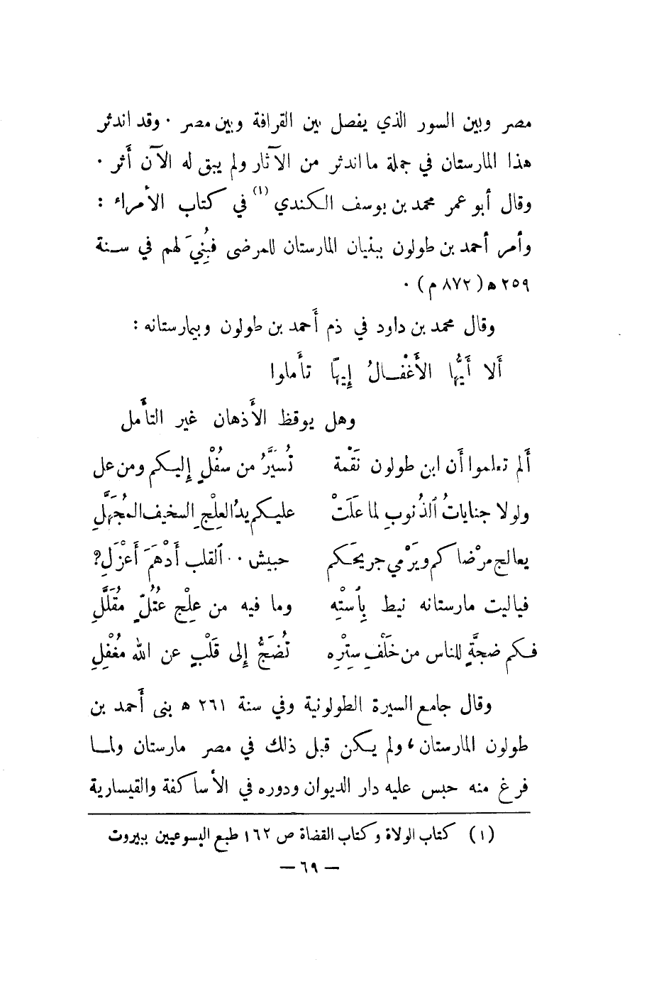 وقال محمد بن داود في ذم أحمد بن طولون وبيمارستانه:
