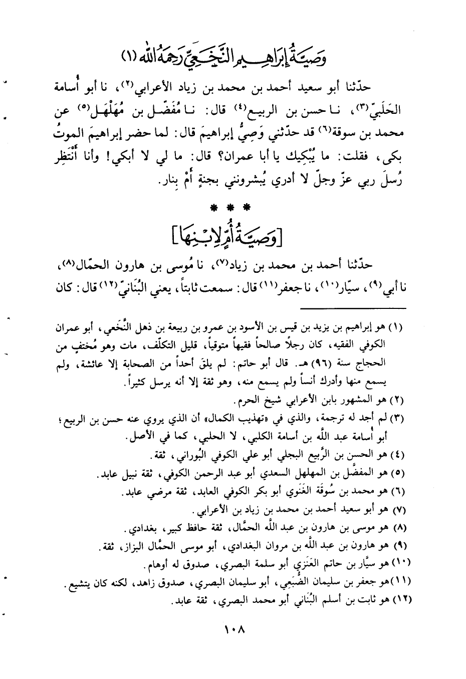 §وَصِيَّةُ إِبْرَاهِيمَ النَّخَعِيِّ رَحِمَهُ اللَّهُ