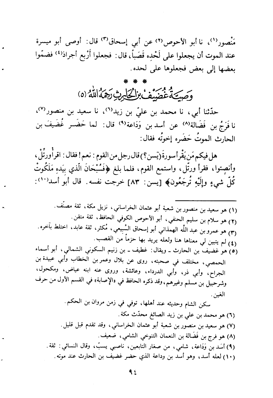 §وَصِيَّةُ غُضَيْفِ بْنِ الْحَارِثِ رَحِمَهُ اللَّهُ