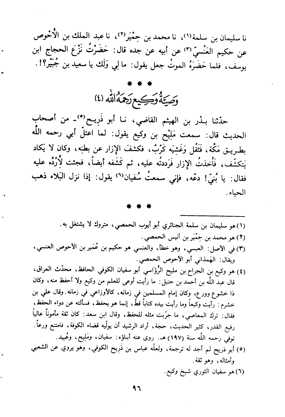 §وَصِيَّةُ وَكِيعٍ رَحِمَهُ اللَّهُ