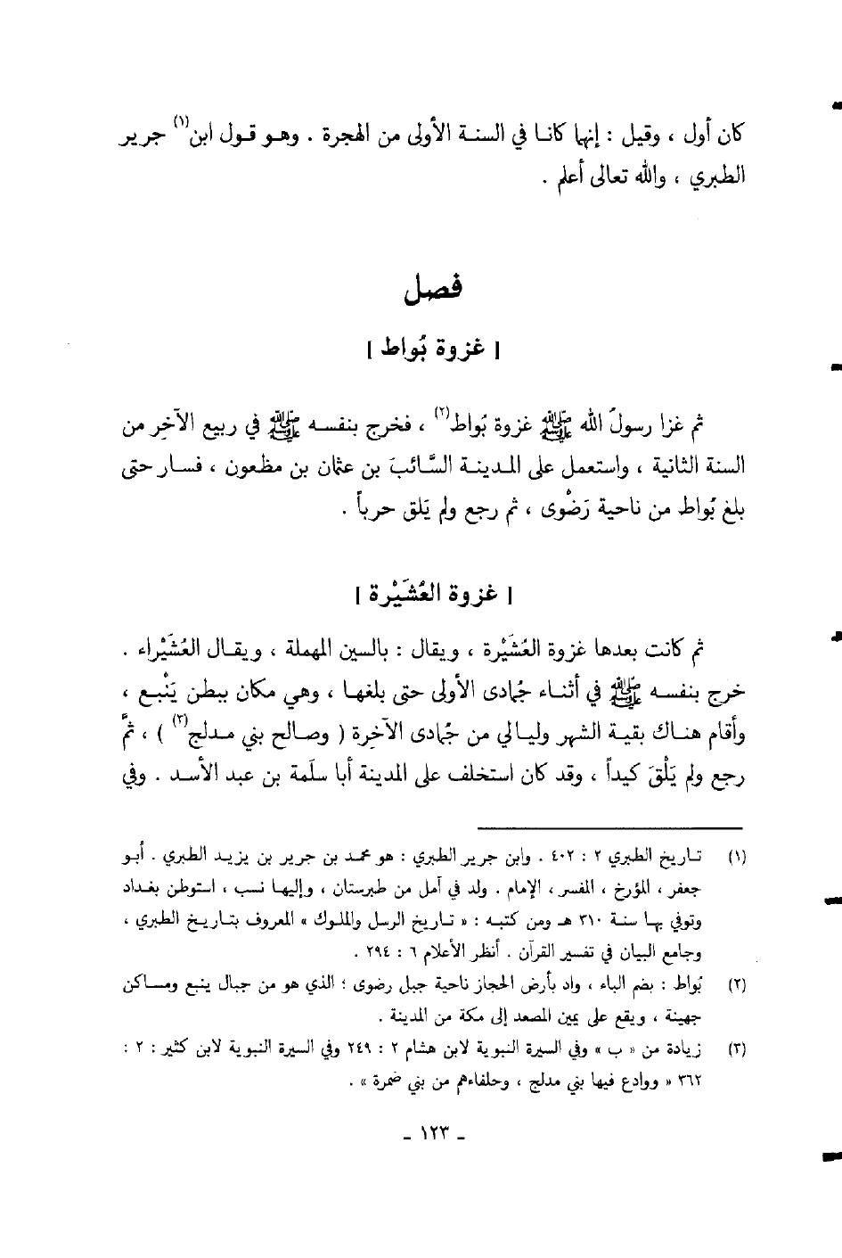 ثم كانت بعدها غزوة العشيرة، ويقال بالسين المهملة، ويقال العشيراء.