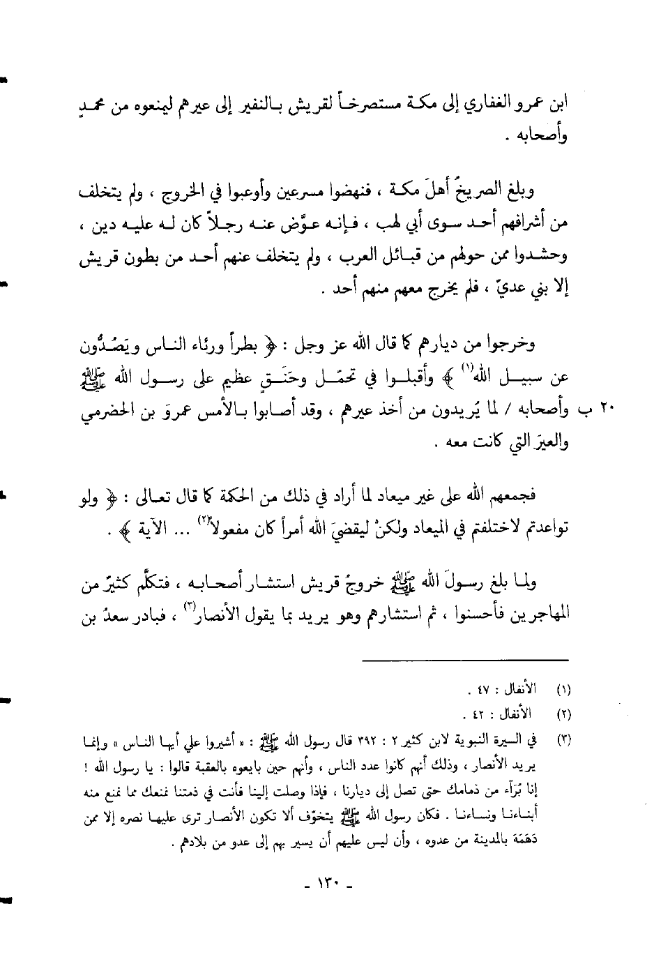ولما بلغ رسول الله صلى الله عليه وسلم خروج قريش استشار أصحابه، فتكلم كثير من المهاجرين فأحسنوا، ثم استشارهم وهو يريد بما يقول الأنصار، فبادر سعد بن