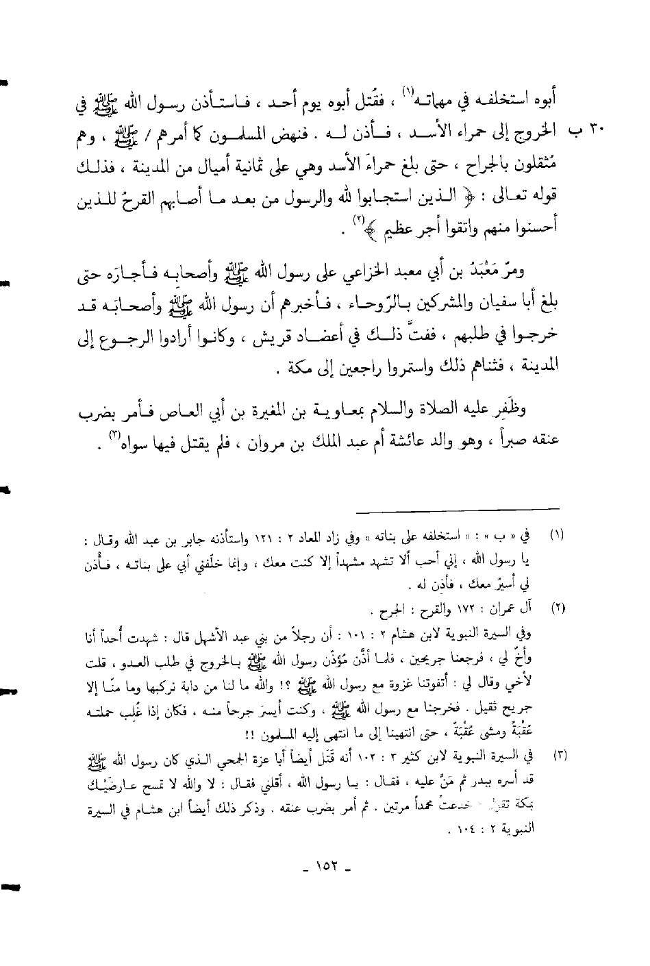 وظفر عليه الصلاة والسلام بمعاوية بن المغيرة بن أبي العاصي فأمر بضرب عنقه صبراً، وهو والد عائشة أم عبد الملك بن مران، فلم يقتل فيها سواه.