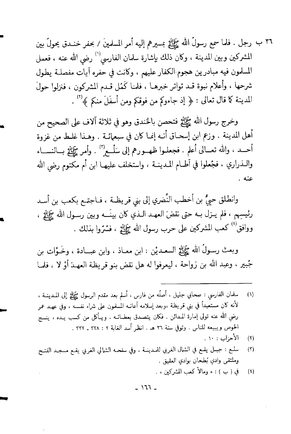 وخرج رسول الله صلى الله عليه وسلم فتحصن بالخندق وهو في ثلاثة آلاف على الصحيح من أهل المدينة.
