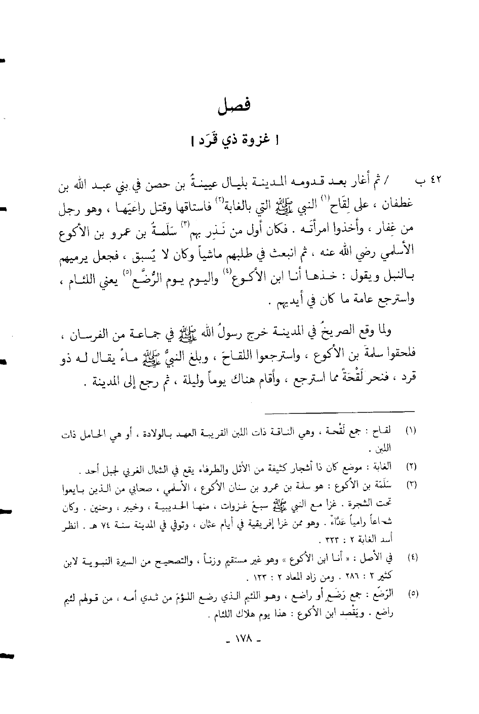 فكان أول من نذر بهم سلمة بن عمرو بن الأكوع الأسلمي رضي الله عنه، ثم انبعث في طلبهم ماشياً وكان لا يسبق، فجعل يرميهم بالنبل ويقول: خذها أنا ابن الأكوع واليوم يوم الرضع يعني اللئام، واسترجع عامة ما كان في أيديهم.