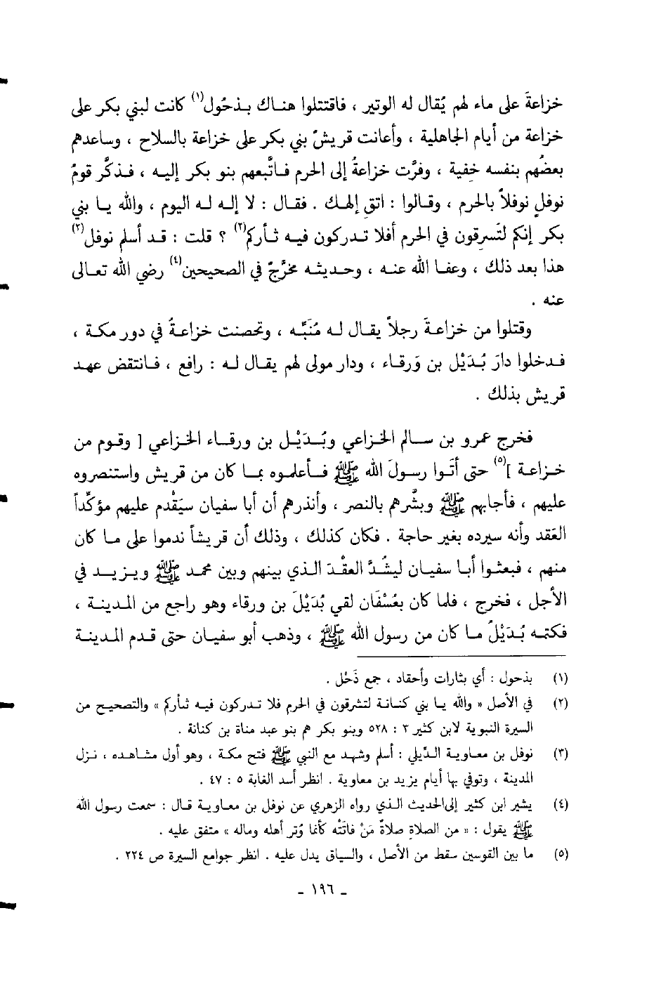 فقال لا إله له اليوم، والله يا بني بكر إنكم لتسرقون في الحرم أفلا تدركون فيه ثأركم؟ قلت: قد أسلم نوفل هذا بعد ذلك، وعفا الله عنه، وحديثه مخرج في الصحيحين رضي الله عنه.