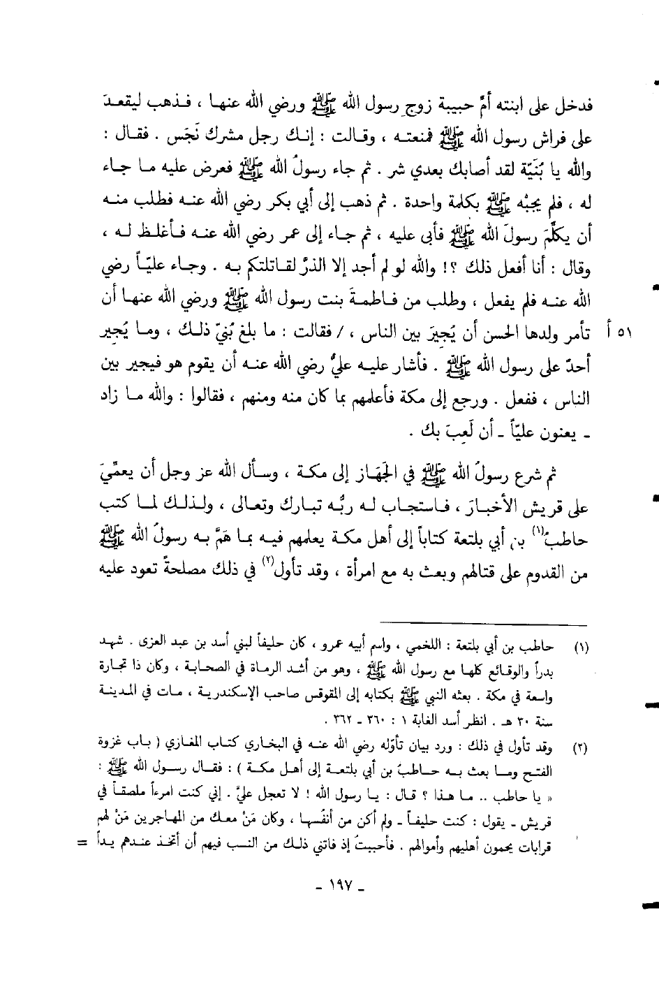وجاء علياً رضي الله عنه فلم يفعل، وطلب من فاطمة بنت رسول الله صلى الله عليه وسلم ورضي الله عنها أن تأمر ولدها الحسن أن يجير بين الناس، فقالت: ما بلغ بني ذلك، وما يجيل أحد على رسول الله صلى الله عليه وسلم.