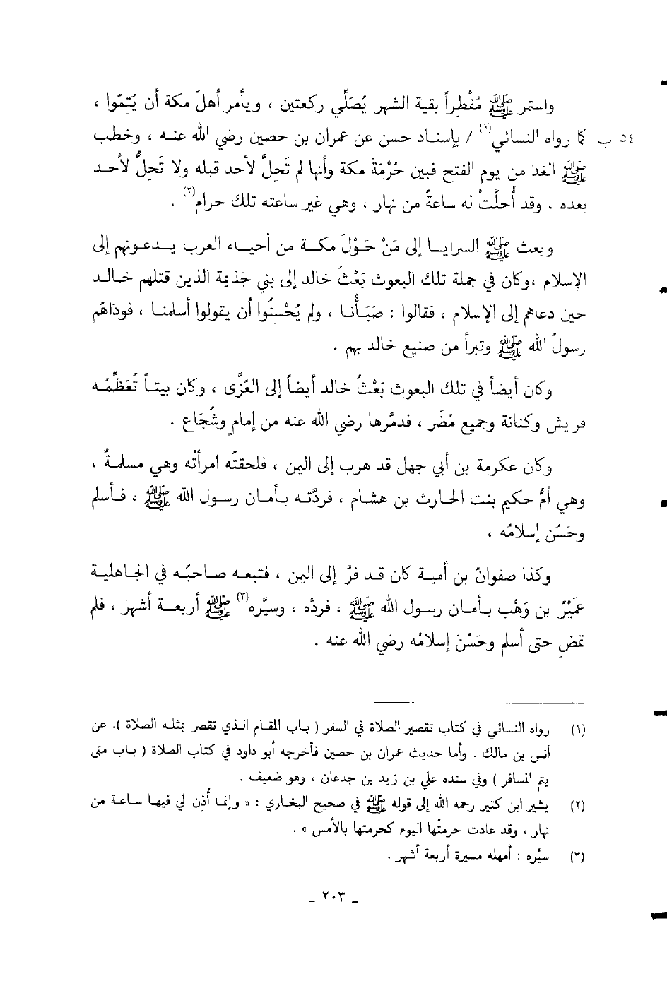 استمر صلى الله عليه وسلم مفطراً بقية الشهر يصلي ركعتين، ويأمر أهل مكة أن يتموا» ، كما رواه النسائي بإسناد حسن عن عمران بن حصين رضي الله عنه، وخطب صلى الله عليه وسلم الغد من يوم الفتح فبين حرمة مكة وأنها لم تحل لأحد قبله ولا تحل لأحد بعده، وقد أحلت له ساعة من نهار، وهي غير ساعته تلك حرام.