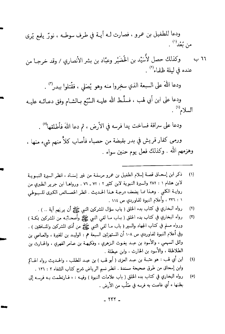 ودعا للطفيل بن عمرو، فصارت آية في طرف سوطه، نور يلمع يرى من بعد.