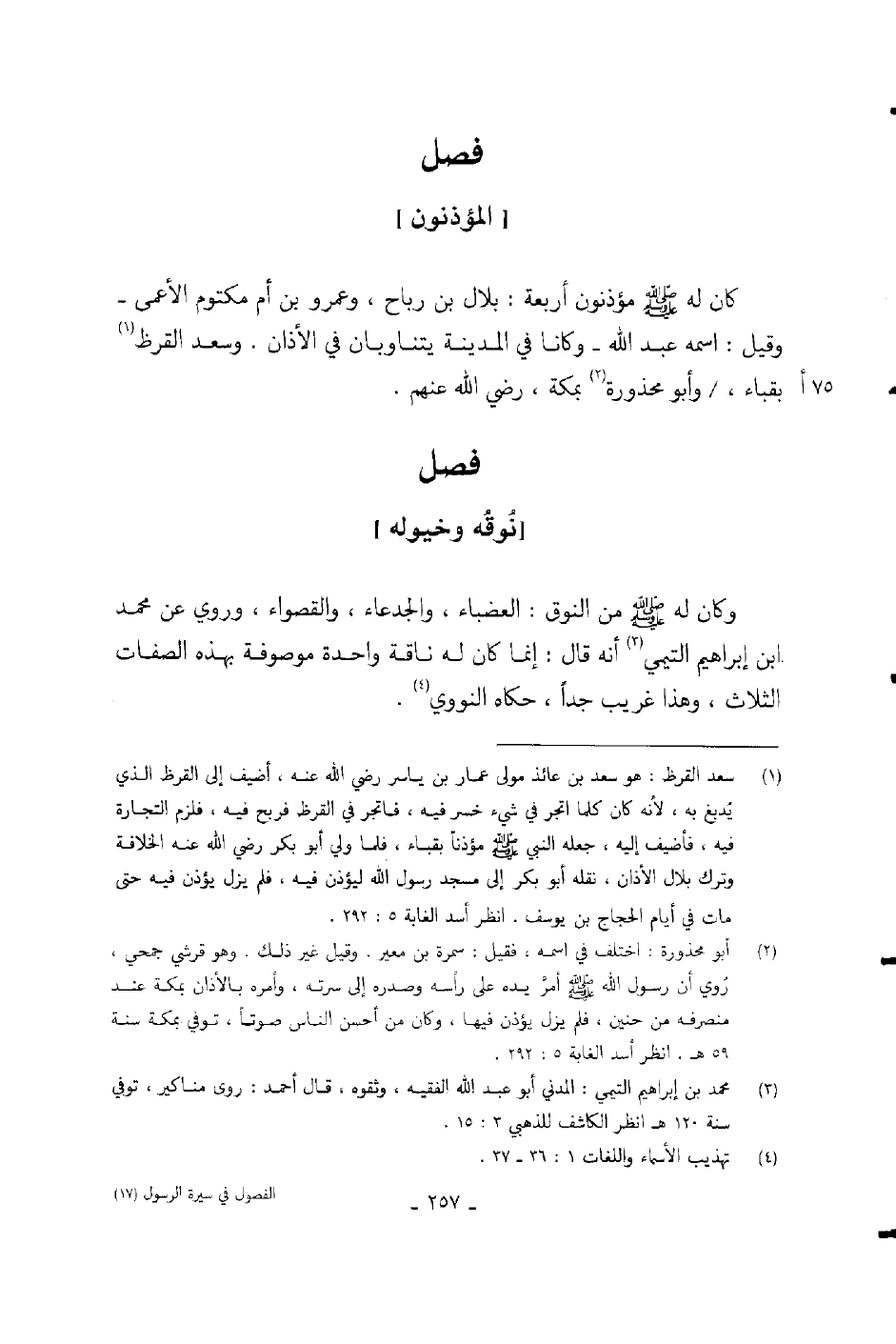 كان له صلى الله عليه وسلم مؤذنون أربعة: بلال بن رباح، وعمرو بن أم مكتوم الأعمى ـ وقيل: اسمه عبد الله ـ وكانا في المدينة يتناوبان في الآذان.