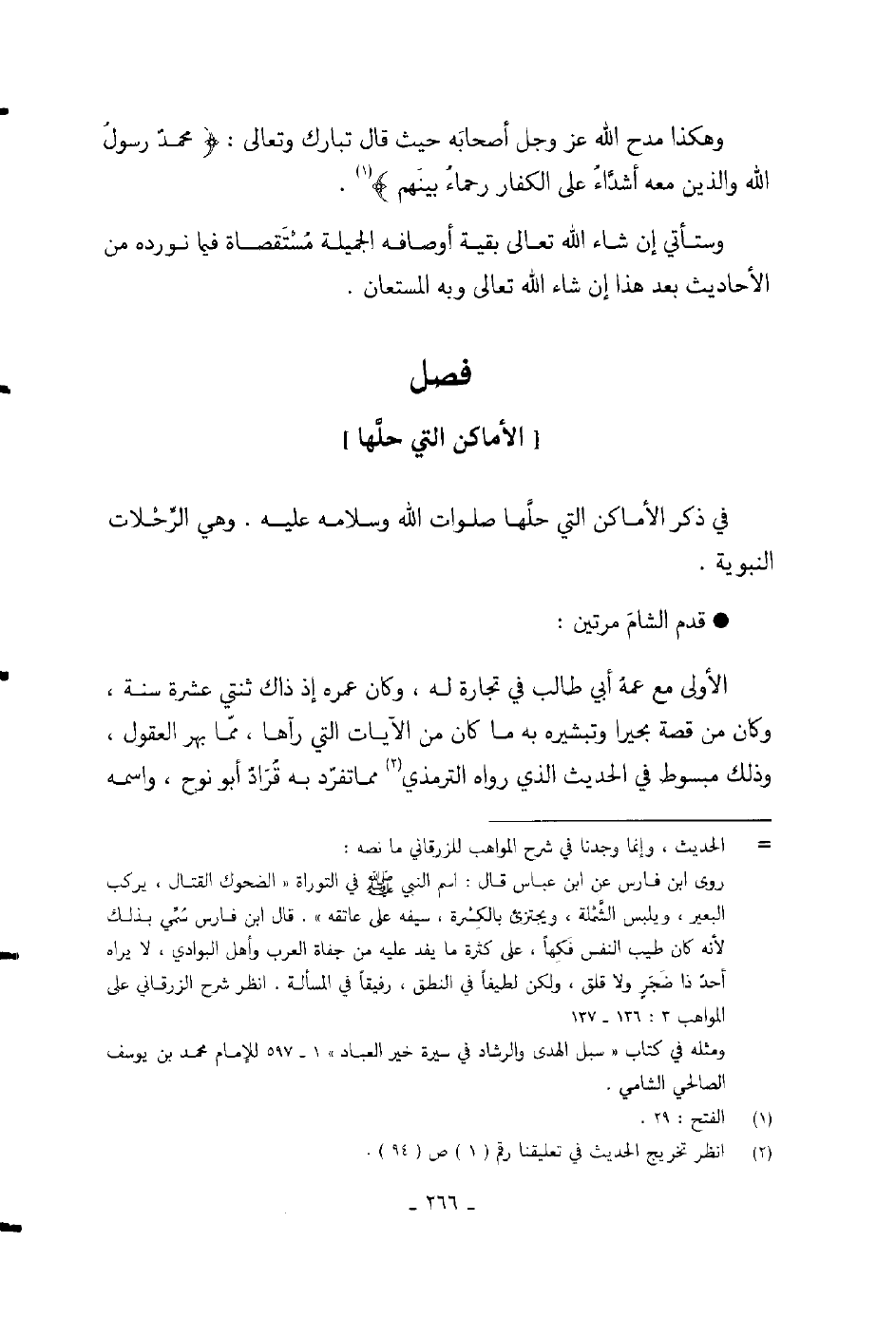 في ذكر الأماكن التي حلها صلوات الله وسلامه عليه.