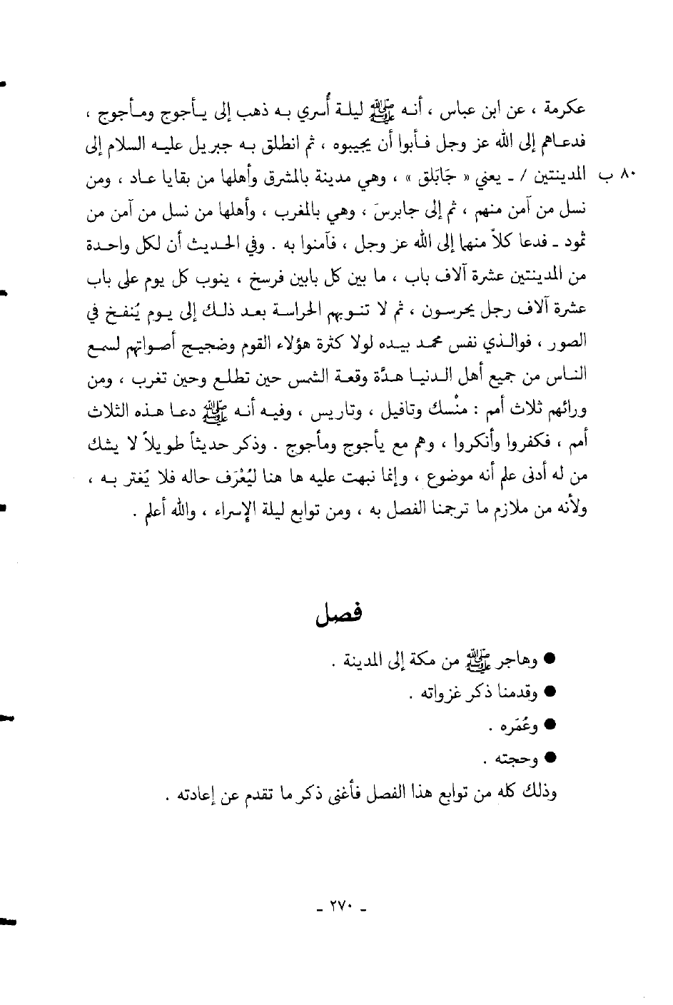 وذكر حديثاً طويلاً لا يشك من له أدنى علم أنه موضوع، وإنما نبهت عليه ها هنا ليعرف حاله فلا يغتر به، ولأنه من ملازم ما ترجمنا الفصل به، ومن توابع ليلة الإسراء، والله أعلم.