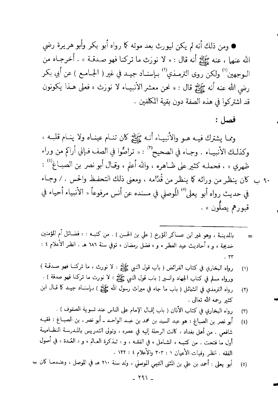 ومن ذلك أنه لم يكن ليورث بعد موته «كما رواه أبو بكر وأبو هريرة رضي الله عنهما، عنه صلى الله عليه وسلم أنه قال: لا نورث ما تركنا فهو صدقة» .
