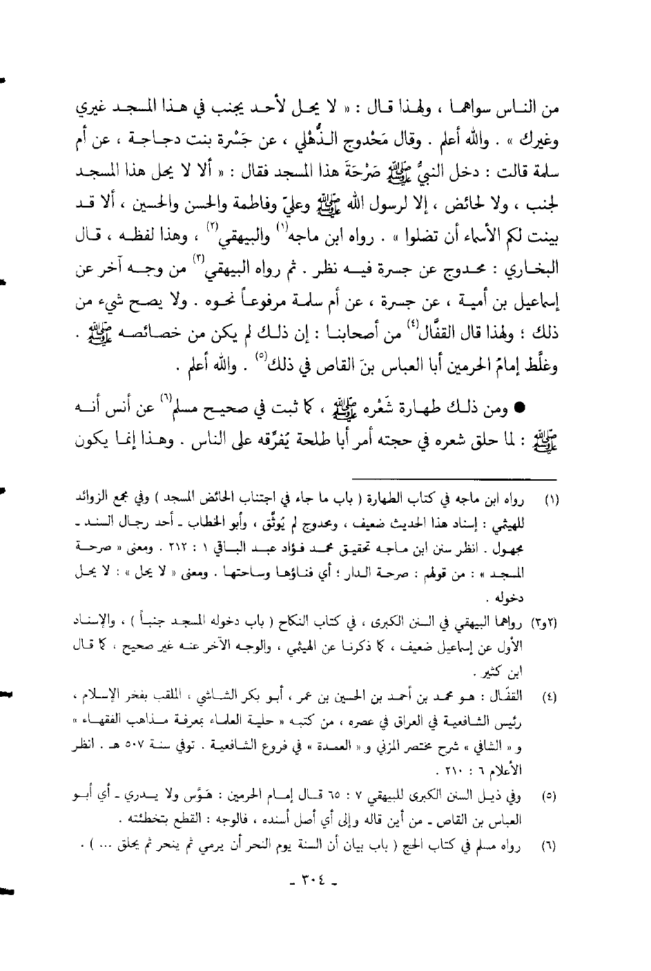 ومن ذلك طهارة شعره صلى الله عليه وسلم، كما ثبت في صحيح مسلم عن أنس أنه صلى الله عليه وسلم: لما حلق شعره في حجته أمر أبا طلحة يفرقه على الناس.