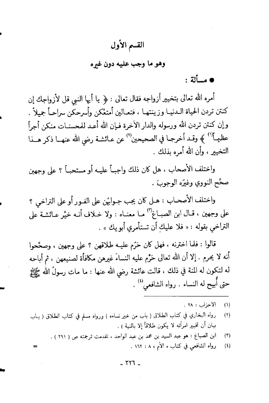 القسم الأول ـ وهو ما وجب عليه دون غيره