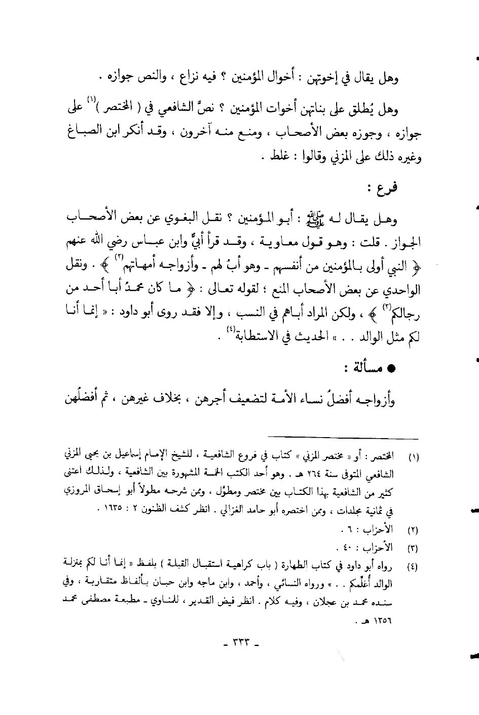 وهل يطلق على بناتهن أخوات المؤمنين؟ نص الشافعي في المختصر على جوازه، وجوزه بعض الأصحاب، ومنع منه آخرون، وقد أنكر ابن الصباغ وغيره ذلك على وقالوا: غلط.